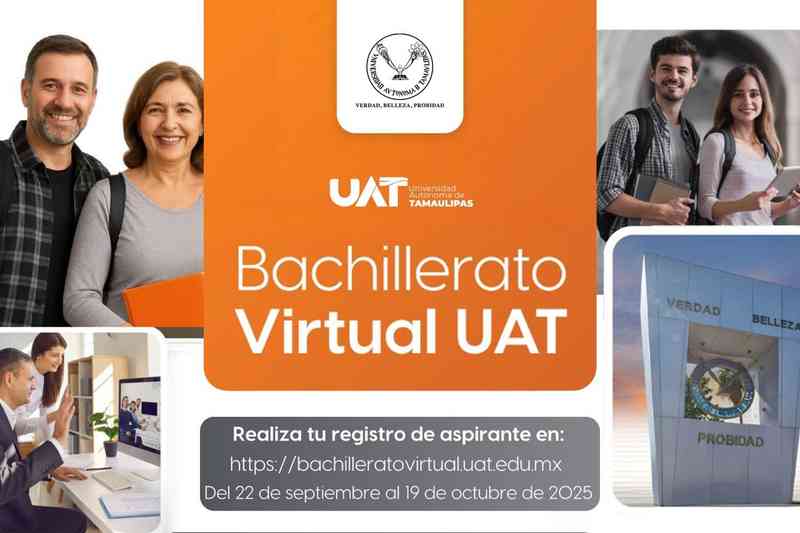 El proceso de registro permanecerá abierto hasta el 19 de octubre de 2025 a través del sitio oficial: https://bachilleratovirtual.uat.edu.mx, donde también puede ser consultada la convocatoria.