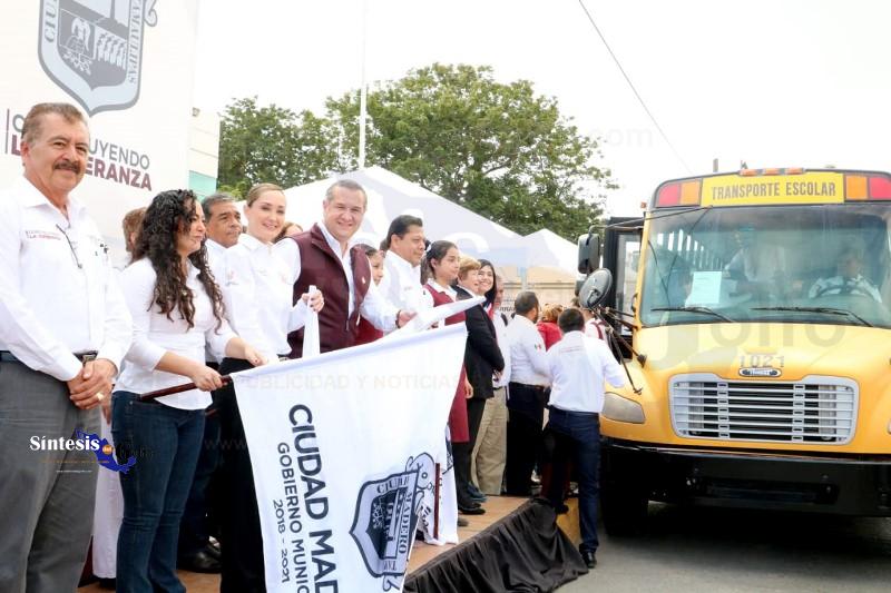 CIUDAD MADERO, TAM.- Con el fin de disminuir el índice de deserción escolar y respaldar la economía de las familias maderenses, el alcalde Adrián Oseguera Kernion dio arranque al programa de “Transporte Escolar Gratuito” beneficiando en su primera etapa a más de 600 estudiantes de 50 escuelas en la urbe petrolera.