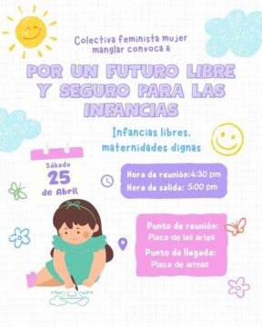 TAMPICO, TAM.- La Colectiva Feminista Mujer Manglar convoca a una movilización por las infancias y maternidades, que se llevará a cabo el próximo sábado 25 de abril en la plaza de las Artes.
