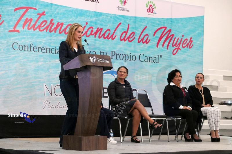 CIUDAD MADERO, TAM.- “Es bueno soñar, pero no quedarse mucho tiempo en el sueño, sino ponerse una meta concreta y hacer un plan para lograrla”, dijo Nora Toledano Cadena, nadadora de aguas abiertas, durante la conferencia “Cruza tu propio Canal”, organizada por el Sistema DIF Madero, presidido por la Sra. Ana Cristina Organista de Oseguera para conmemorar el Día Internacional de la Mujer.