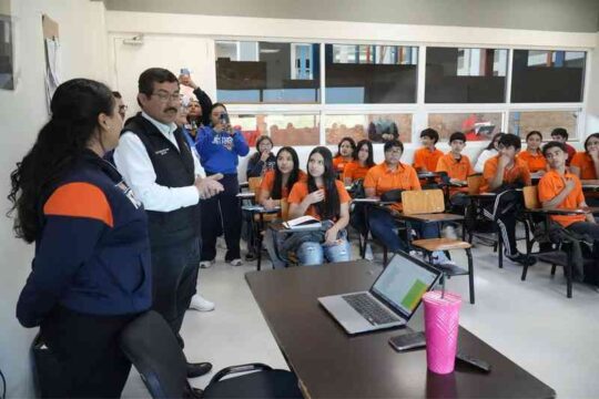 Durante su estancia, el rector conoció al grupo del programa bilingüe, una de las principales fortalezas académicas de la Preparatoria No. 3, que permite a los jóvenes cursar diversas asignaturas en inglés, fortaleciendo sus competencias lingüísticas, comunicativas y de liderazgo desde el nivel medio superior.