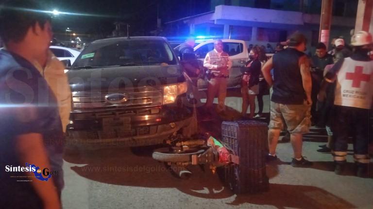 ALTAMIRA, TAM.- Un choque entre una camioneta y una motocicleta se registró aproximadamente a las 19:00 horas de ayer jueves, en el cruce de las calles Josefa Ortiz de Domínguez y Emilio Portes Gil de la colonia Serapio Venegas al sur de esta Heroica Ciudad y Puerto de Altamira.