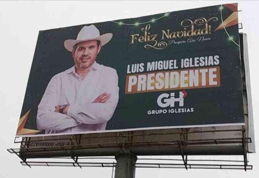 Los anuncios panorámicos, firmados por Grupo Iglesias, muestran al empresario portando su característico sombrero blanco, una imagen que vecinos de distintas colonias asocian con jornadas de apoyo comunitario, entrega de ayuda social y acompañamiento a sectores históricamente olvidados.