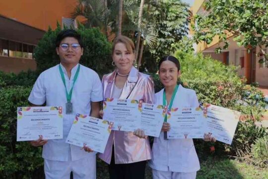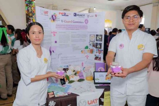 TAMPICO, TAM.- Los estudiantes de la Universidad Autónoma de Tamaulipas, Campus Sur, Yuridia Guadalupe Ruíz García y Juan Pablo Hernández Hernández, asesorados por la Dra. Ma. Hortensia Castañeda Hidalgo, obtuvieron la medalla de oro en el evento INFOMATRIX Golfo Norte 2026 con su proyecto “V-Guard Gummies”.