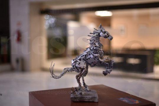 En la explanada del Congreso del Estado se llevó a cabo la inauguración de la exposición “Escultura y Diseño Industrial”, de los artistas Nathalia V. O. y Ronald Aguilar, quienes exhiben piezas de madera, resinas, metal galvanizado y materiales reciclados.