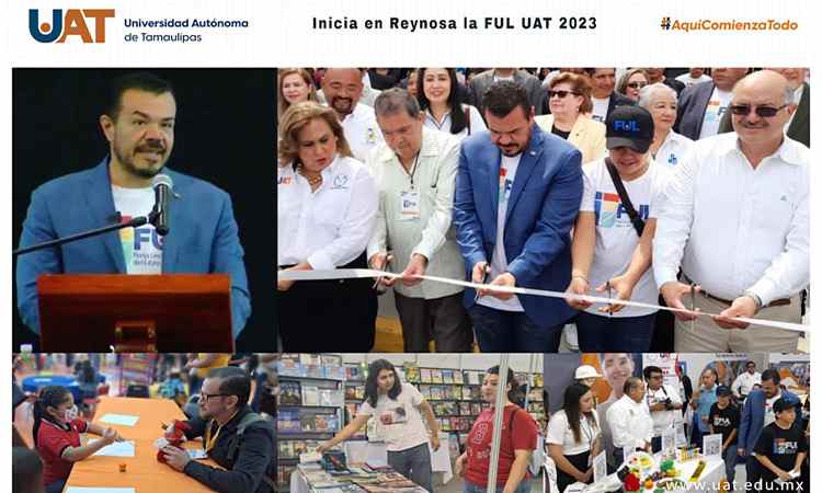 El rector de la Universidad Autónoma de Tamaulipas (UAT), C.P. Guillermo Mendoza Cavazos, puso en marcha en Reynosa la Feria Universitaria del Libro (FUL UAT) 2023 que se desarrollará del 6 al 14 de mayo con una diversidad de eventos literarios, culturales y artísticos abiertos para todo el público.