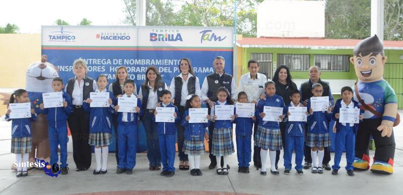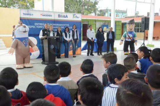 TAMPICO, TAM.- El presidente municipal Chucho Nader entregó este viernes nombramientos como Inspectores Honorarios del programa «Tampico Brilla» a los alumnos de la escuela primaria «Felipe de la Garza», ubicada en la colonia Cascajal.