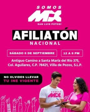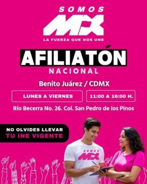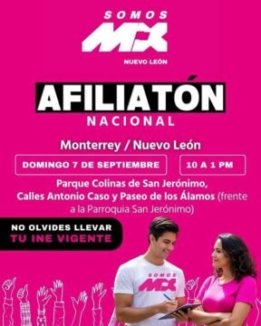 CIUDAD DE MÉXICO.- A partir del lunes 1 de septiembre y hasta el 12 del mismo mes, Somos México (SOMOS MX) lleva a cabo una intensa campaña denominada “Afiliatón Nacional”, cuyo objetivo es integrar a La Fuerza que Nos Une a ciudadanas y ciudadanos de todo el país.
