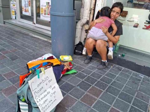*** Madre de familia intercambia ropa por comida para sus hijos, esto en pleno centro de la ciudad